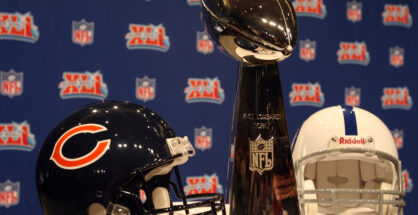 Feb 2, 2007; Miami Beach, FL, USA; The Chicago Bears and Indianapolis Colts helmets sit beside the Lombardi Trophy during the head coaches press conference for Super Bowl XLI at the Miami Beach Convention Center in Miami Beach, Florida. Mandatory Credit: Matthew Emmons-Imagn Images Copyright © 2007 Matthew Emmons One of the major sports stories More...